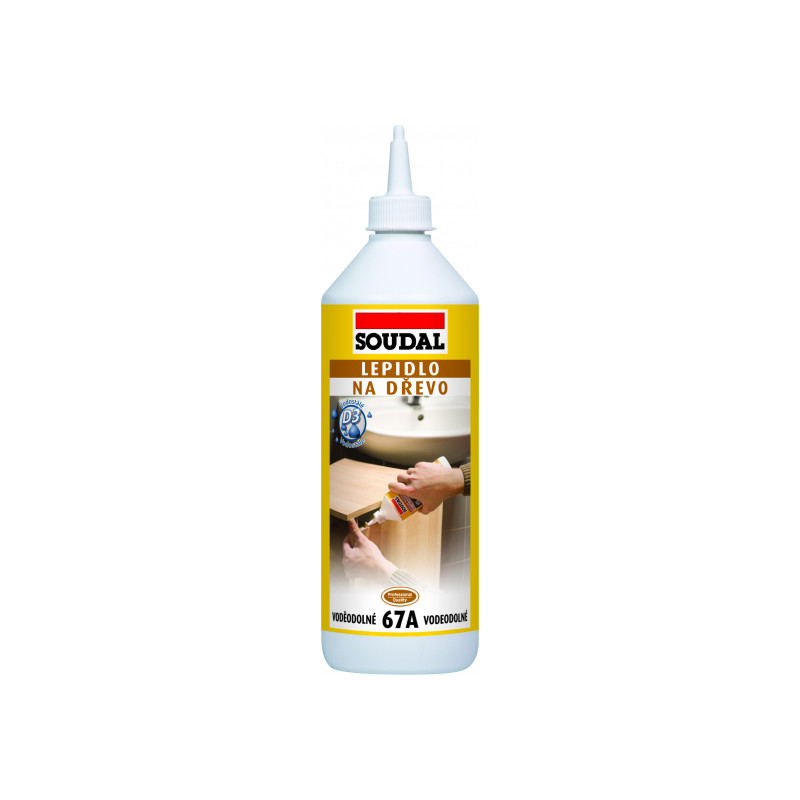 Soudal 67A vysoce kvalitní konstrukční vodostálé lepidlo na dřevo pro truhláře a tesaře s velmi rychlou dobou tuhnutí a pevností spoje. Konstrukční lepení dřevěných prvků ve stavebnictví a průmyslu. Lepení spojů zahradního nábytku, kuchyňských linek, dřevěných schodišť, eurooken a ostatních výrobků z veškerých druhů dřev tvrdých i exotických. Lepení dřevotřísky, dřevěných šablon atd. Po zaschnutí poloprůhledné se zařazením v třídě odolnosti vůči působení vlhkosti D3 (ČSN EN 204).
