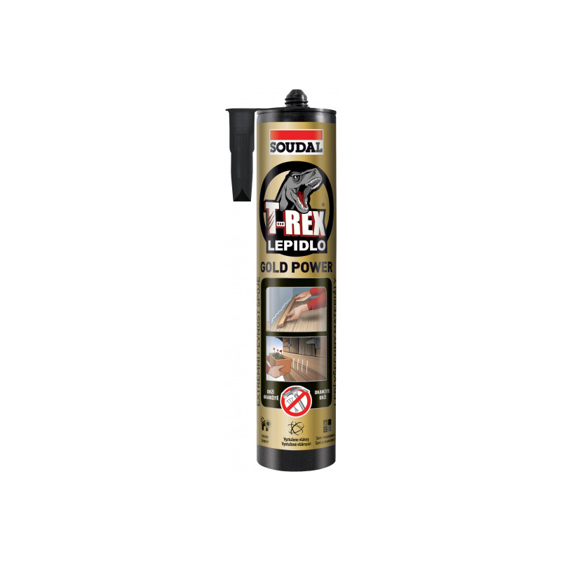 Soudal T-Rex Gold Power je vysokopevnostní lepidlo s extrémní počáteční přilnavostí. Vytváří vysoce pevný, pružný a vodotěsný spoj. Přilne i na vlhké povrchy. Vlákny zesílená struktura lepidla zajišťuje vysokou pevnost a dlouhodobou odolnost lepeného spoje.